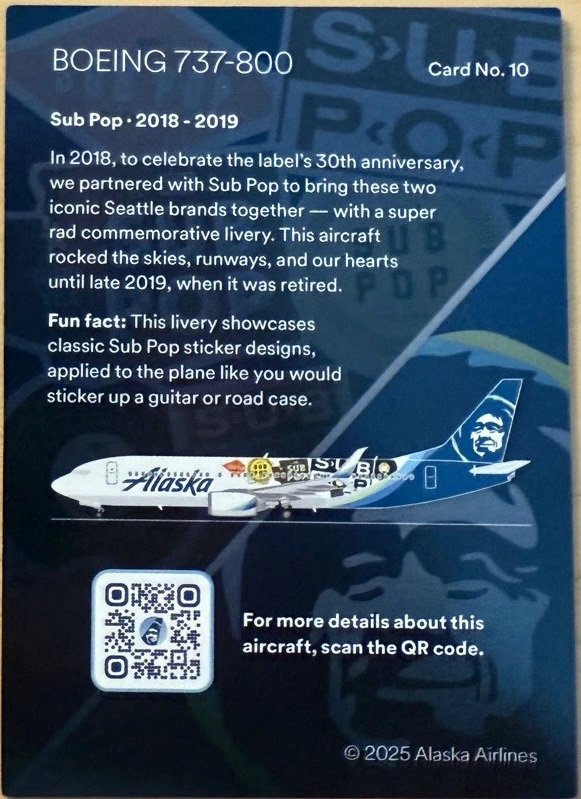 In 2025, Alaska seriously upped its game and released a set of 10 cards. 1-4 and 5-9 could be gotten from their website as a set, but 5 and 10 could only come from pilots.