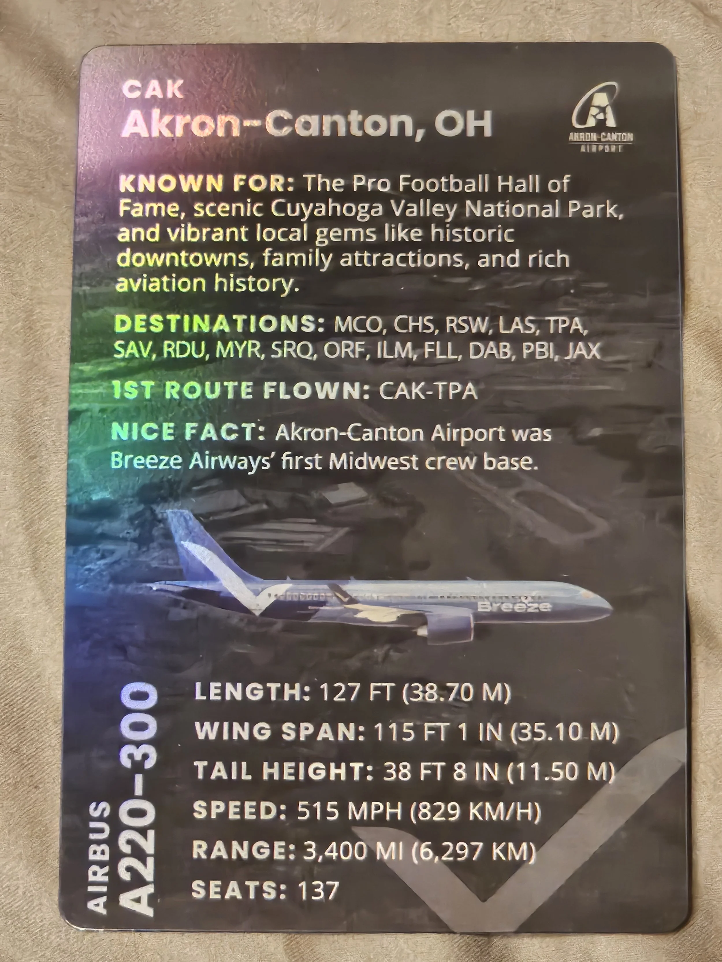 In 2025, Breeze Airways joined the Pilot card game and came out with at least 3 pilot cards. They are thicker stock and have rounded corners and a rainbow hologram, each with fun facts.