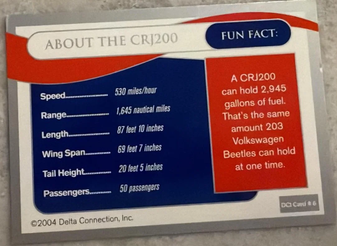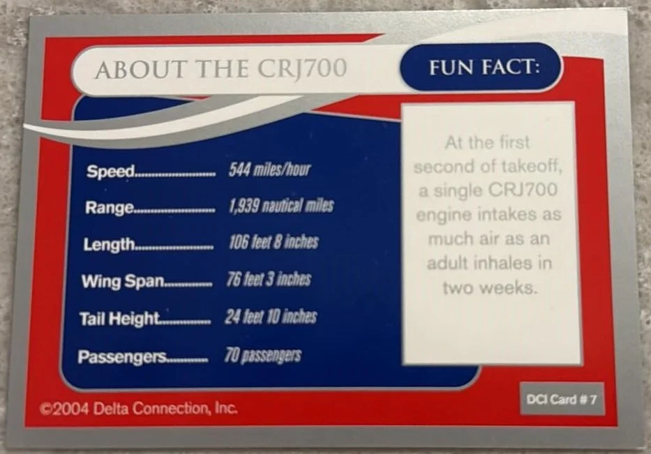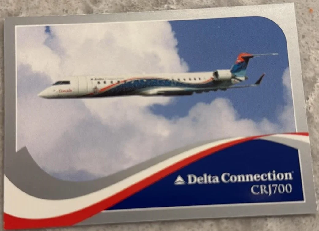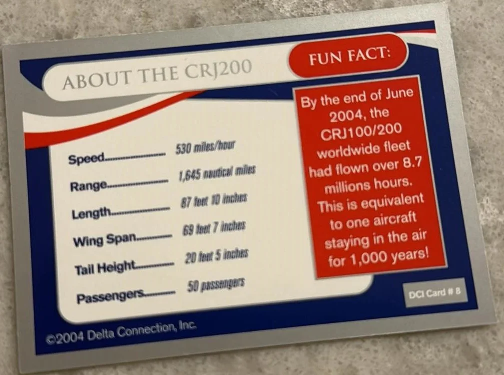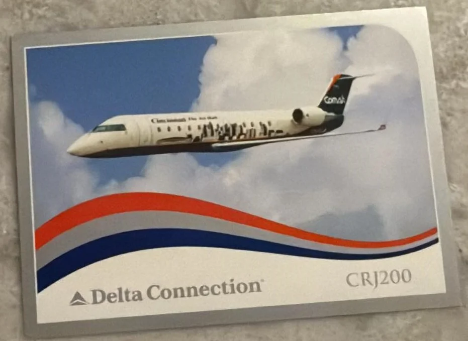 I wish I knew more about these cards. I have only ever seen these 5, and I have only been able to get 3 of them. I presume these were the same as the first set printed in 2023, but the cards were issued for the regional flights that Delta operated. They were printed in 2004 with the second set, even though they are in the style of the first set. The two I do not have, I found on old ebay listings from years before. I have not seen cards 3 and 5 in person. If you have any more information on these, please send me an email and let me know. JamesWright@WoodByWright.com