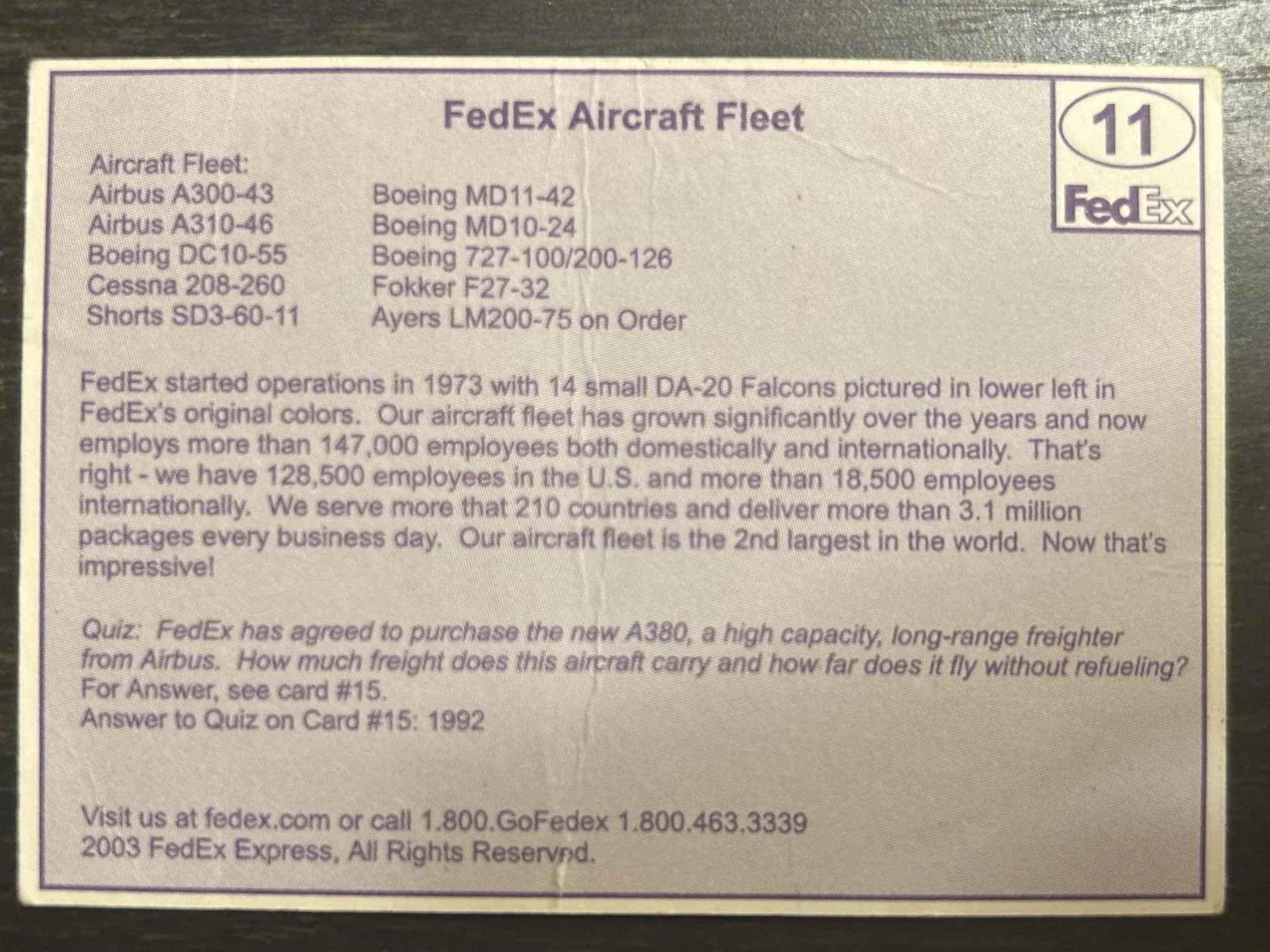The third series of FedEx pilot cards was released in 2002. Yes, you can get these from pilots, but you could also get them from delivery drivers and FedEx functions.