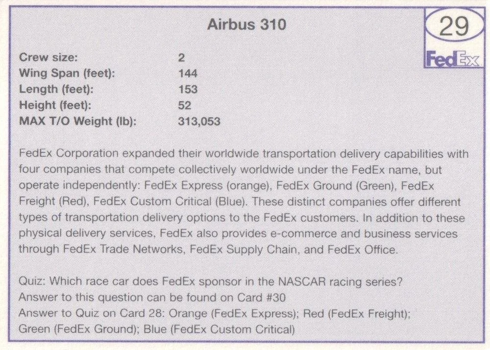 FedEx Trading Cards 2010