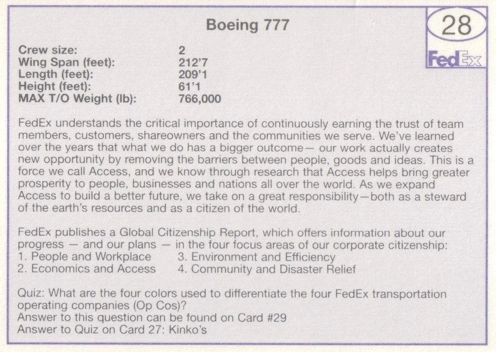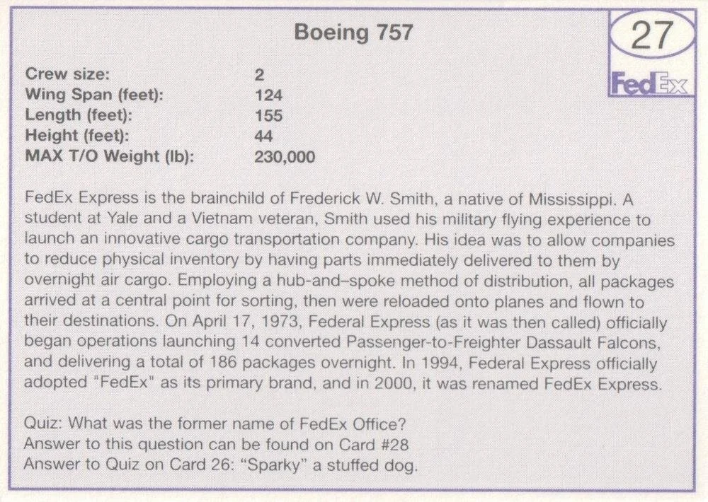 The sixth series of FedEx pilot cards was released in 2010. Yes, you can get these from pilots, but you could also get them from delivery drivers and FedEx functions. As far as we know, this was the last time FedEx printed cards.