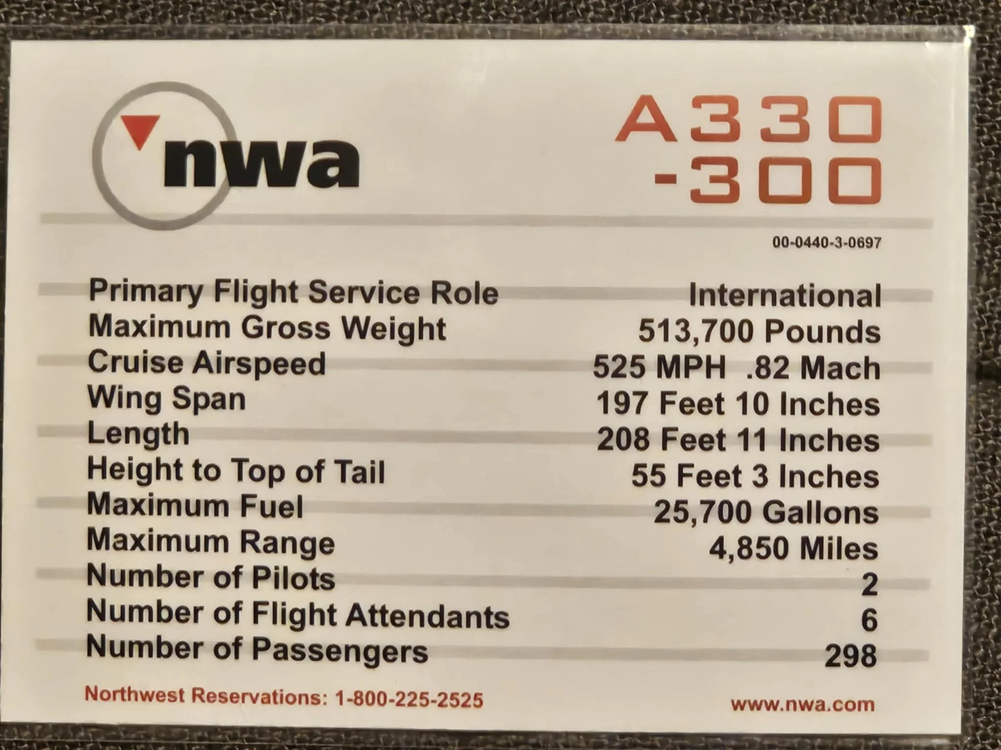 Third Printing Northwest Airlines (#29) A330-300 front