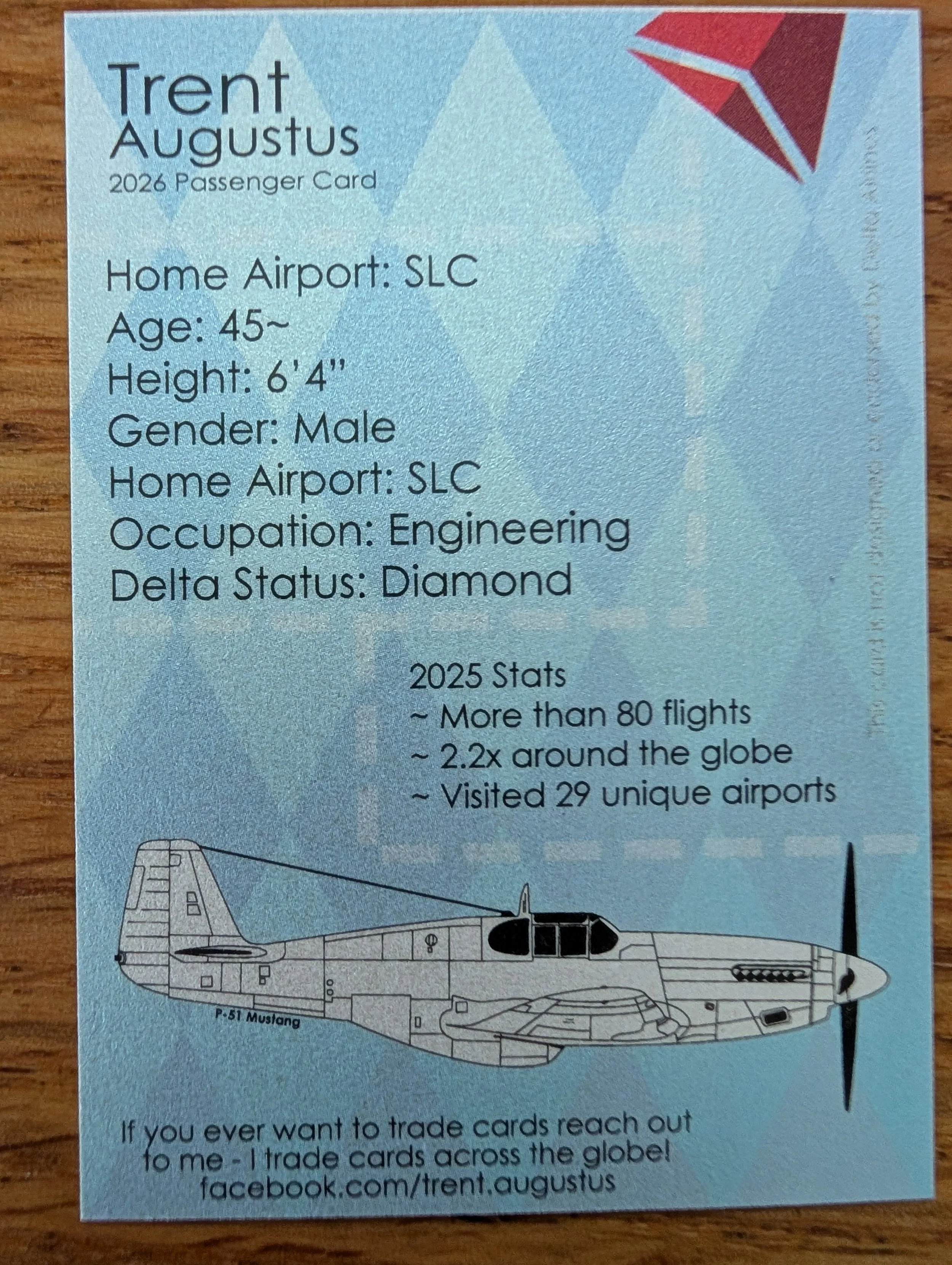 Many pilot card collectors like to make their own cards to hand out to pilots. It is always fun to see the look on a pilot's face when they receive a passenger card. If you have one you would like to include here, please use the contact form and let us know. Also, if you would like your contact information here, please let us know in the email.